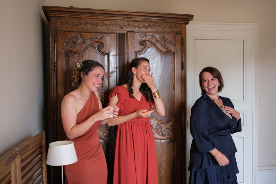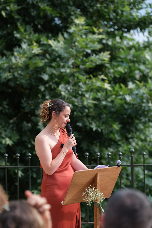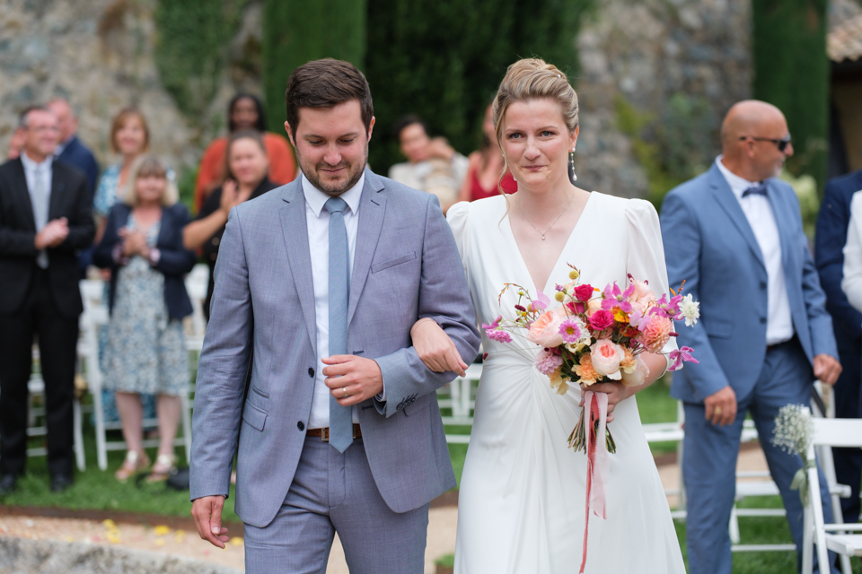 Météo très variable ce jour là, nous n’avons pas pu avoir une magnifique golden hour mais comme vous le verrez, l’absence de soleil ou le temps nuageux ne gâche pas la journée ! J’apprécie personnellement beaucoup le rendu aussi et sachez que si la cérémonie avait été en plein soleil, la lumière dure de début août n’aurait pas permis d’avoir un rendu aussi doux et harmonieux :) Un temps nuageux permet un rendu assez doux et flatteur, car il n’y a pas d’ombres dures et de contrastes parfois difficiles à gérer entre ombre et soleil.