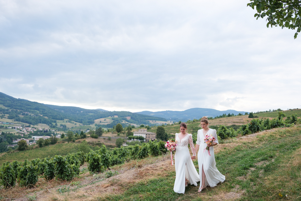 En août, j’ai retrouvé D&V pour leur mariage au Domaine de Vavril, un cadre agréable avec une magnifique vue dans le Beaujolais. Une journée de mariage joyeuse et conviviale où tout se passait sur place, au Domaine, des préparatifs à la soirée.